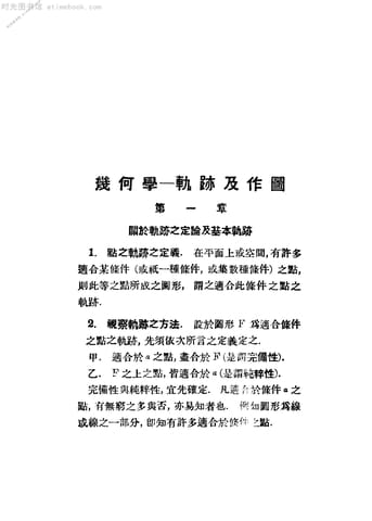 | 网盘路径:/时光图书馆珍藏系列/书籍文件/老图书/《几何学——轨迹及作图》电子版合集.db | ||