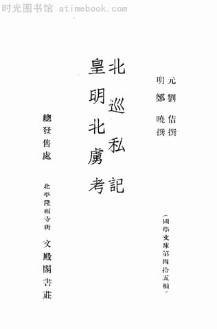 | 网盘路径:/时光图书馆珍藏系列/书籍文件/老图书/《北巡私记_皇明北卢考》电子版合集.db | ||
