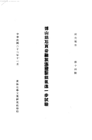 | 网盘路径:/时光图书馆珍藏系列/书籍文件/老图书/《博山铝石页岩硷灰法提制铝氧进一步试验》电子版合集.db | ||