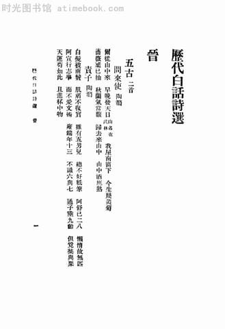 | 网盘路径:/时光图书馆珍藏系列/书籍文件/老图书/《历代白话诗选》电子版合集.db | ||