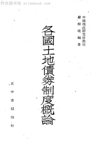 | 网盘路径:/时光图书馆珍藏系列/书籍文件/老图书/《各国土地债券制度概论》电子版合集.db | ||