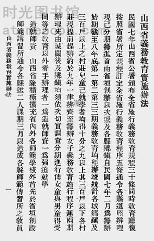 | 网盘路径:/时光图书馆珍藏系列/书籍文件/老图书/《各地方实施义务教育汇刊》电子版合集.db | ||