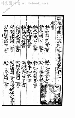 | 网盘路径:/时光图书馆珍藏系列/书籍文件/老图书/《唐丞相曲江张先生文集_3》电子版合集.db | ||