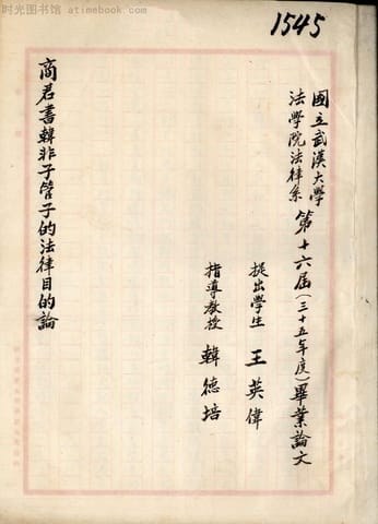 | 网盘路径:/时光图书馆珍藏系列/书籍文件/老图书/《商君书韩非子管子的法律目的论》电子版合集.db | ||