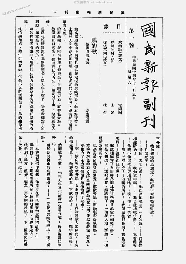 | 网盘路径:/时光图书馆珍藏系列/书籍文件/老报纸/北京/《国民新报副刊》(北京)1925-1926年合集.db | ||