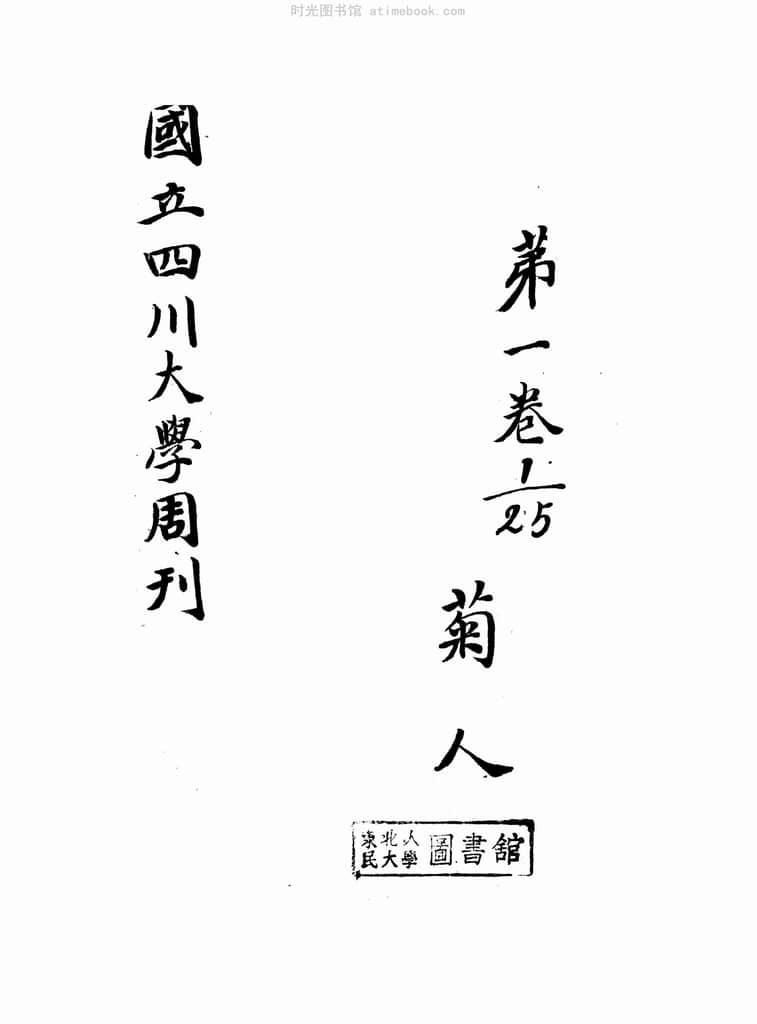 | 网盘路径:/时光图书馆珍藏系列/书籍文件/老杂志、老期刊/民国期刊/四川/《国立四川大学周刊》(成都)1932-1939年合集.db | ||