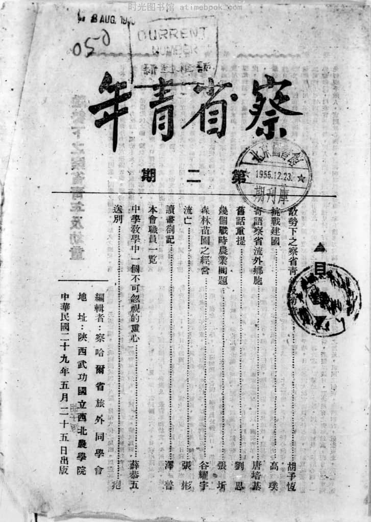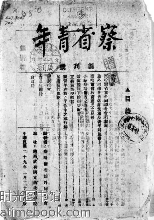 | 网盘路径:/时光图书馆珍藏系列/书籍文件/老杂志、老期刊/《察省青年》1940-1948年合集.db | ||