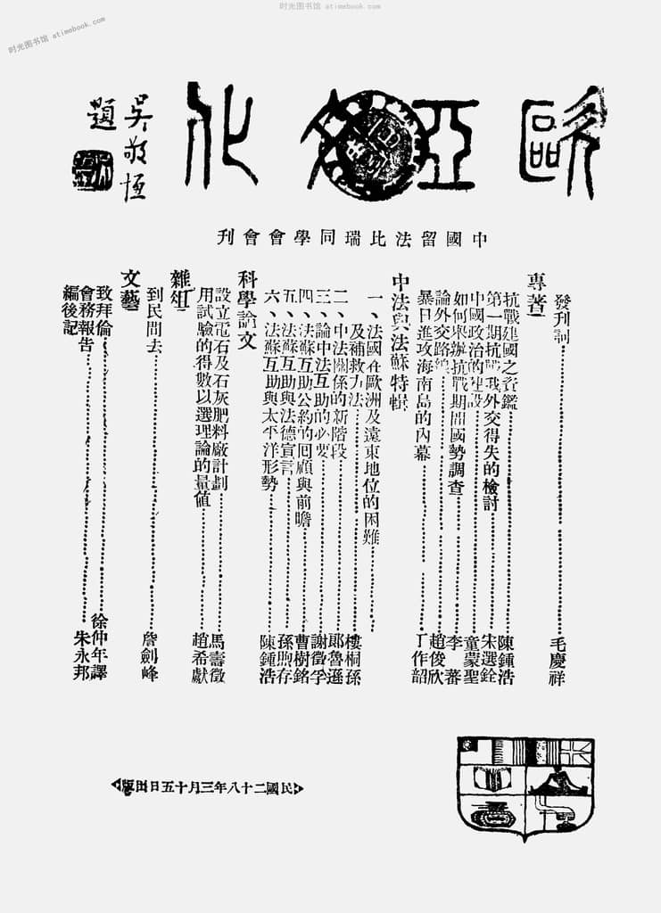 名称:《欧亚文化:中国留法比瑞同学会会刊》(重庆)1939-1941年合集