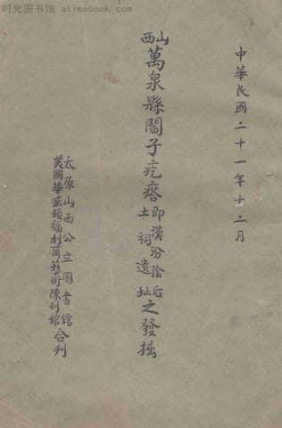 | 网盘路径:/时光图书馆珍藏系列/书籍文件/老图书/《山西万泉县阎子疙瘩即汾阴後土祠遗址之发掘》电子版合集.db | ||