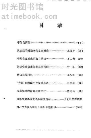 | 网盘路径:/时光图书馆珍藏系列/书籍文件/老图书/《崂山文史资料_李先良在崂山的抗日活动》电子版合集.db | ||