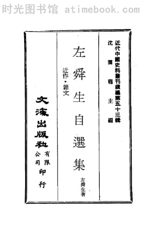 | 网盘路径:/时光图书馆珍藏系列/书籍文件/老图书/《左舜生自选集:近作·杂文》电子版合集.db | ||