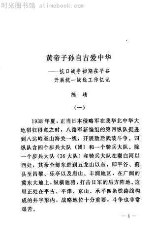 2-1.黄帝子孙自古爱中华——抗日战争初期在平谷开展统一战线工作忆记陈靖