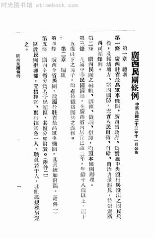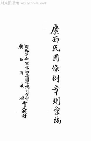 | 网盘路径:/时光图书馆珍藏系列/书籍文件/老图书/《广西民团条例章则汇编》电子版合集.db | ||