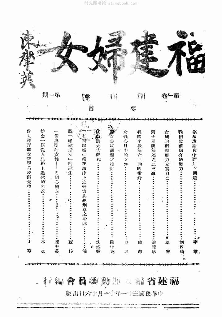 | 网盘路径:/时光图书馆珍藏系列/书籍文件/老杂志、老期刊/民国期刊/福建/《福建妇女》(连城)1942-1946年合集.db | ||