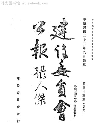 网盘路径:/时光图书馆珍藏系列/书籍文件/老图书/《建设委员会公报(第四十三期)》电子版合集.db