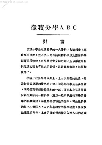 | 网盘路径:/时光图书馆珍藏系列/书籍文件/老图书/《微积分ABC》电子版合集.db | ||