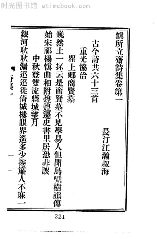 网盘路径:/时光图书馆珍藏系列/书籍文件/老图书/《慎所立斋诗集》电子版合集.db