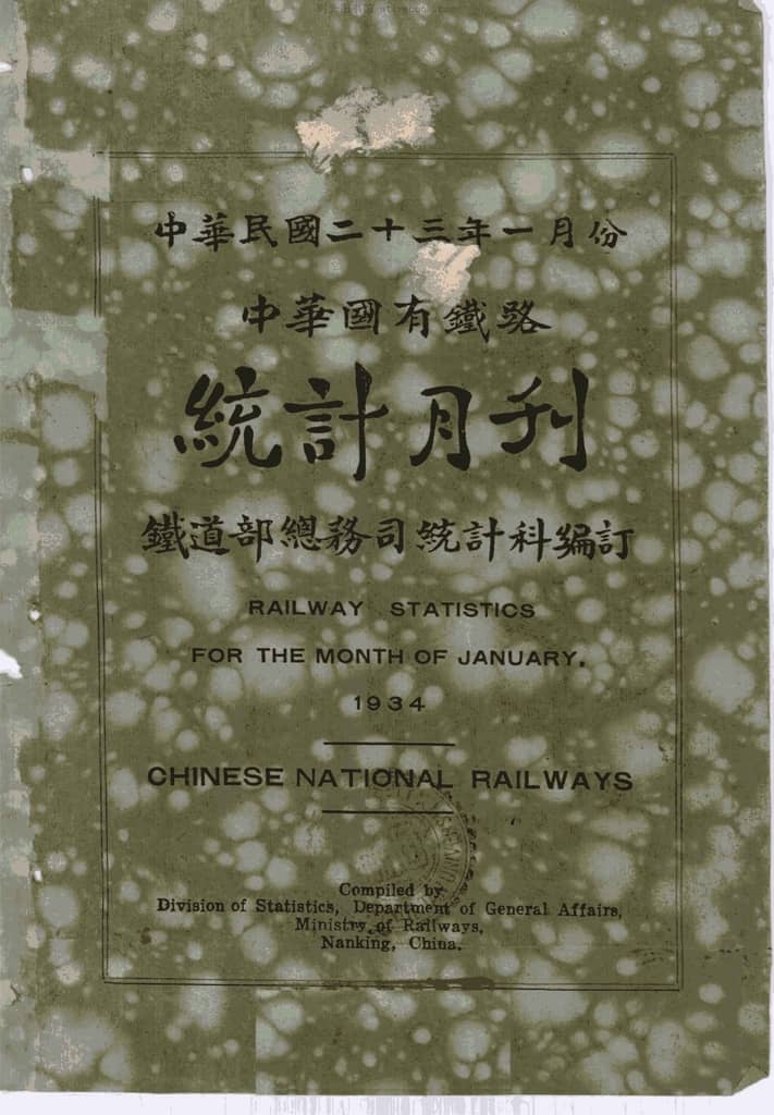 名称:《中华国有铁路统计月刊》(南京)1934-1934年合集