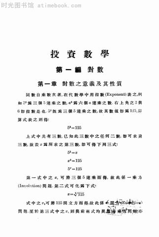 网盘路径:/时光图书馆珍藏系列/书籍文件/老图书/《投资数学_上册》电子版合集.db