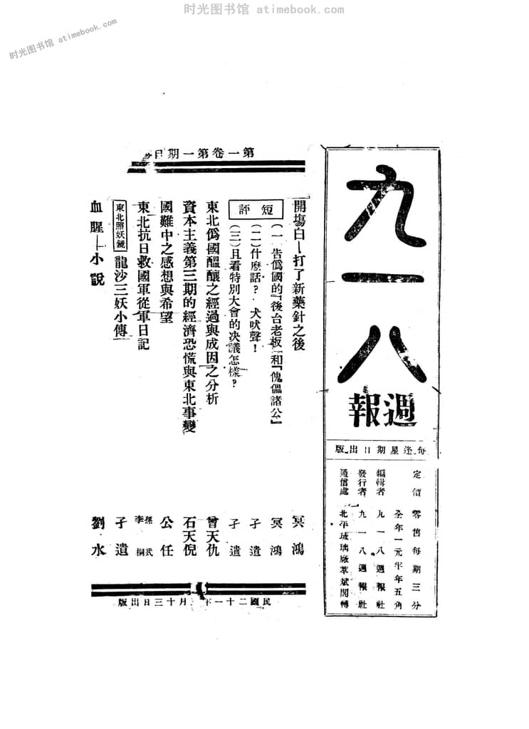 名称:《九一八周报》1932-1932年合集