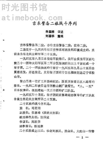 2-吉东警备二旅战斗序列朱国栋口述刘国华整理