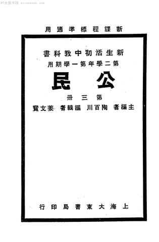 | 网盘路径:/时光图书馆珍藏系列/书籍文件/老图书/《新生活初中教科书_公民_第3册》电子版合集.db | ||