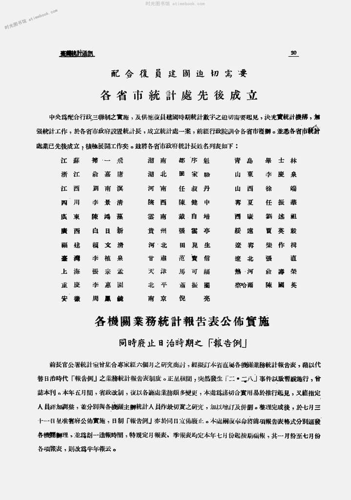 | 网盘路径:/时光图书馆珍藏系列/书籍文件/老杂志、老期刊/民国期刊/台湾/《台湾统计通讯》(台北)1947-1948年合集.db | ||