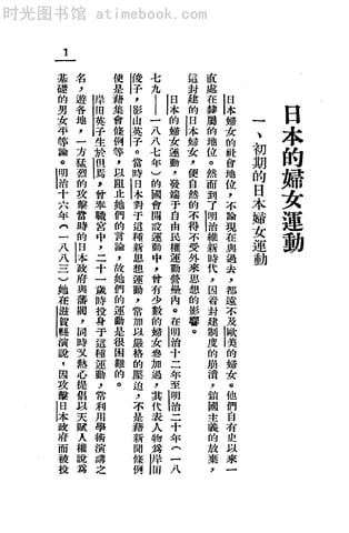 | 网盘路径:/时光图书馆珍藏系列/书籍文件/老图书/《日本的妇女运动》电子版合集.db | ||