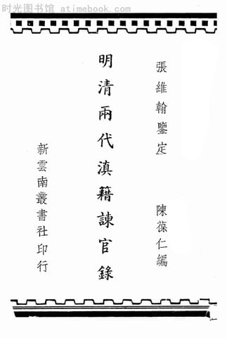 | 网盘路径:/时光图书馆珍藏系列/书籍文件/老图书/《明清两代滇籍谏官录》电子版合集.db | ||