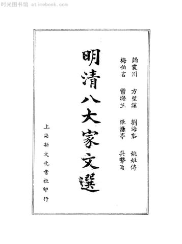| 网盘路径:/时光图书馆珍藏系列/书籍文件/老图书/《明清八大家文选》电子版合集.db | ||