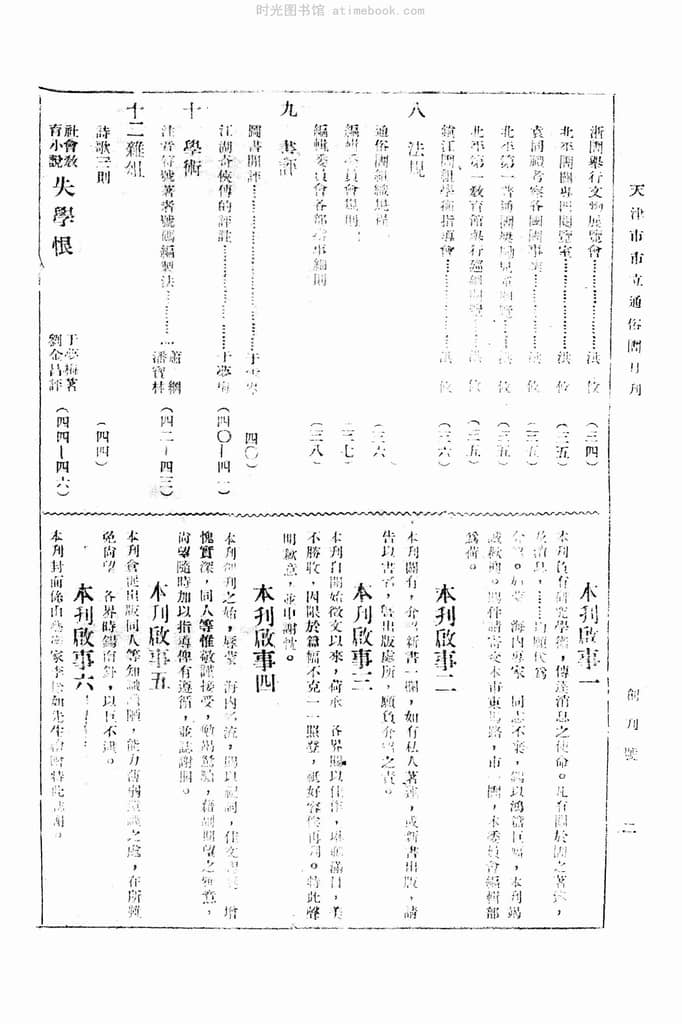 网盘路径:/时光图书馆珍藏系列/书籍文件/老杂志、老期刊/民国期刊/天津/《天津市市立通俗图书馆月刊》(天津)1934-1937年合集.db
