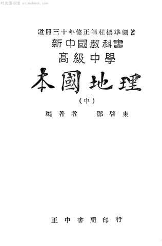 网盘路径:/时光图书馆珍藏系列/书籍文件/老图书/《本国地理(中)》电子版合集.db
