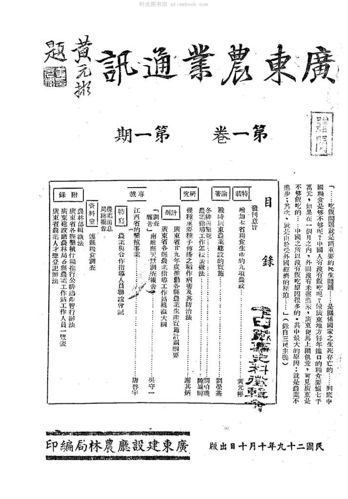 | 网盘路径:/时光图书馆珍藏系列/书籍文件/老杂志、老期刊/民国期刊/广东/《广东农业通讯》(广东)1940-1942年合集.db | ||