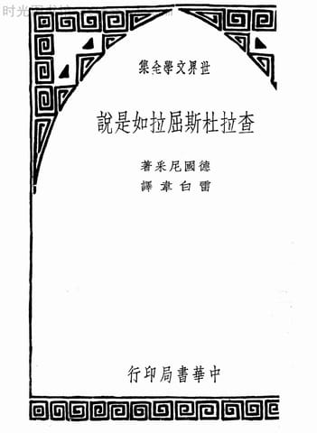 | 网盘路径:/时光图书馆珍藏系列/书籍文件/老图书/《查拉杜斯屈拉如是说》电子版合集.db | ||