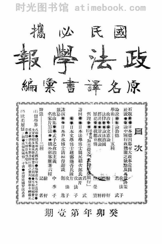 | 网盘路径:/时光图书馆珍藏系列/书籍文件/老报纸/日本/《政法学报》(东京)1903-1904年合集.db | ||