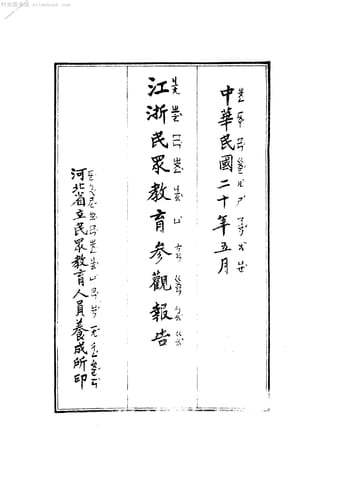 | 网盘路径:/时光图书馆珍藏系列/书籍文件/老图书/《江浙民众教育参观报告》电子版合集.db | ||