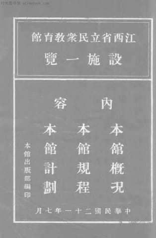 网盘路径:/时光图书馆珍藏系列/书籍文件/老图书/《江西省立民众教育馆设施一览》电子版合集.db