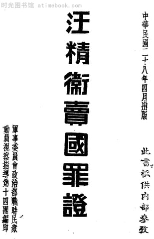 | 网盘路径:/时光图书馆珍藏系列/书籍文件/老图书/《汪精卫卖国罪证》电子版合集.db | ||