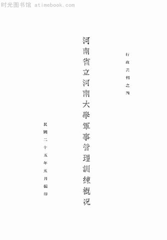 | 网盘路径:/时光图书馆珍藏系列/书籍文件/老图书/《河南省立河南大学军事管理训练概况》电子版合集.db | ||