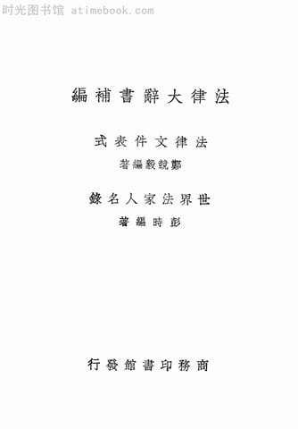 | 网盘路径:/时光图书馆珍藏系列/书籍文件/老图书/《法律大辞书补编:法律文件表式,世界法家人名录》电子版合集.db | ||