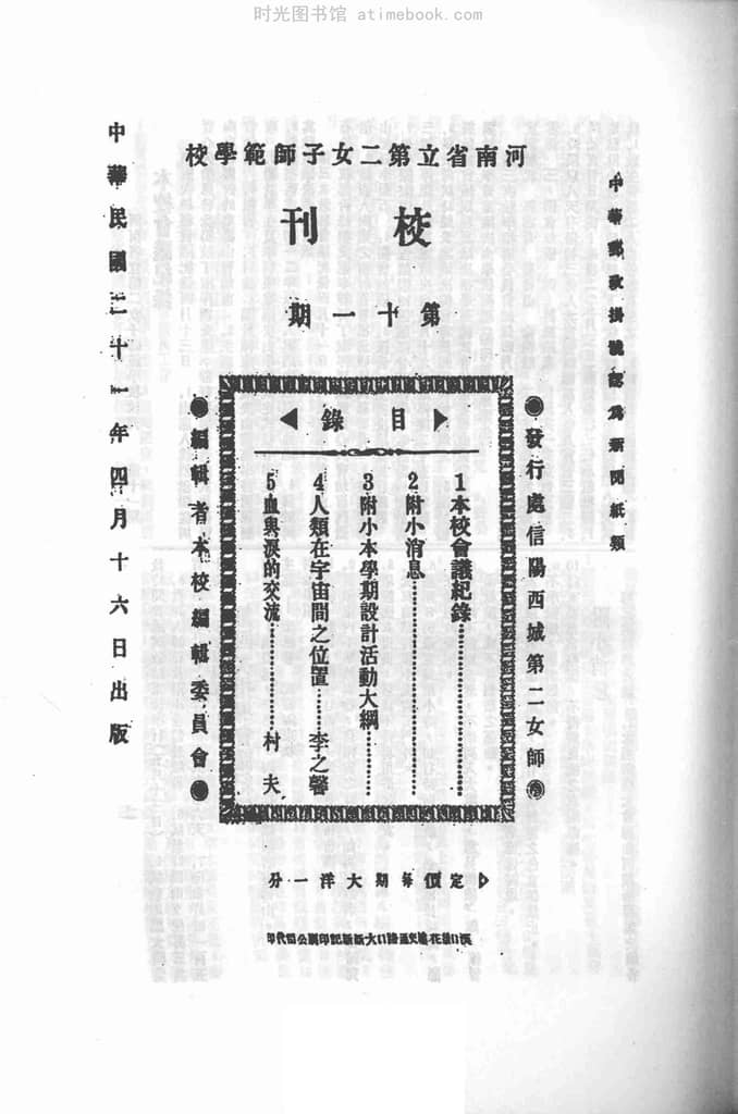网盘路径:/时光图书馆珍藏系列/书籍文件/老杂志、老期刊/民国期刊/河南/《河南省立第二女子师范学校校刊》(信阳)1932-1933年合集.db