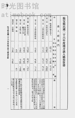 网盘路径:/时光图书馆珍藏系列/书籍文件/老图书/《浙江省民国二十六年度各县市地方岁入岁出总预算书(二)》电子版合集.db