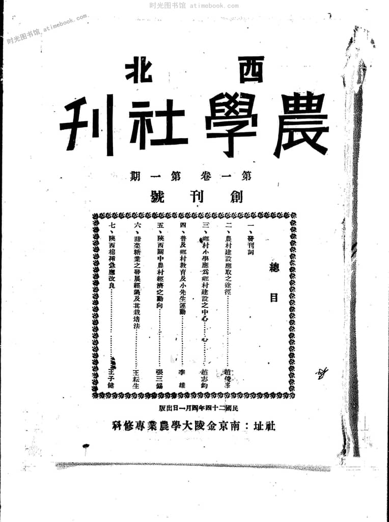 | 网盘路径:/时光图书馆珍藏系列/书籍文件/老杂志、老期刊/《西北农学社刊》1935-1936年合集.db | ||