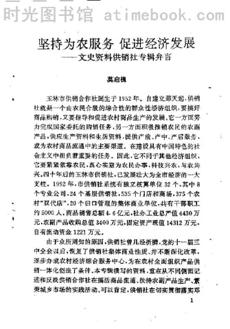 | 网盘路径:/时光图书馆珍藏系列/书籍文件/老图书/《玉林市文史资料_总26辑_市供销社专辑》电子版合集.db | ||