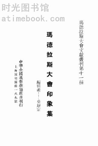 | 网盘路径:/时光图书馆珍藏系列/书籍文件/老图书/《玛德拉斯大会印象集》电子版合集.db | ||