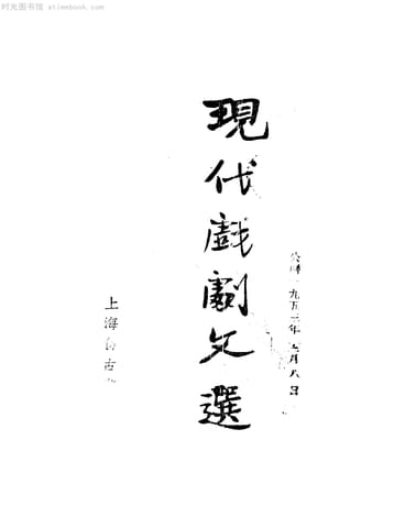 | 网盘路径:/时光图书馆珍藏系列/书籍文件/老图书/《现代戏剧文选》电子版合集.db | ||