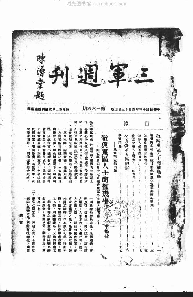 | 网盘路径:/时光图书馆珍藏系列/书籍文件/老杂志、老期刊/民国期刊/广东/《三军周刊》(广州)1934-1934年合集.db | ||
