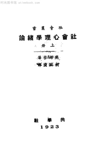 | 网盘路径:/时光图书馆珍藏系列/书籍文件/老图书/《社会心理学绪论上册》电子版合集.db | ||