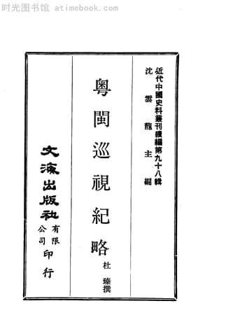 | 网盘路径:/时光图书馆珍藏系列/书籍文件/老图书/《粤闽巡视纪略》电子版合集.db | ||