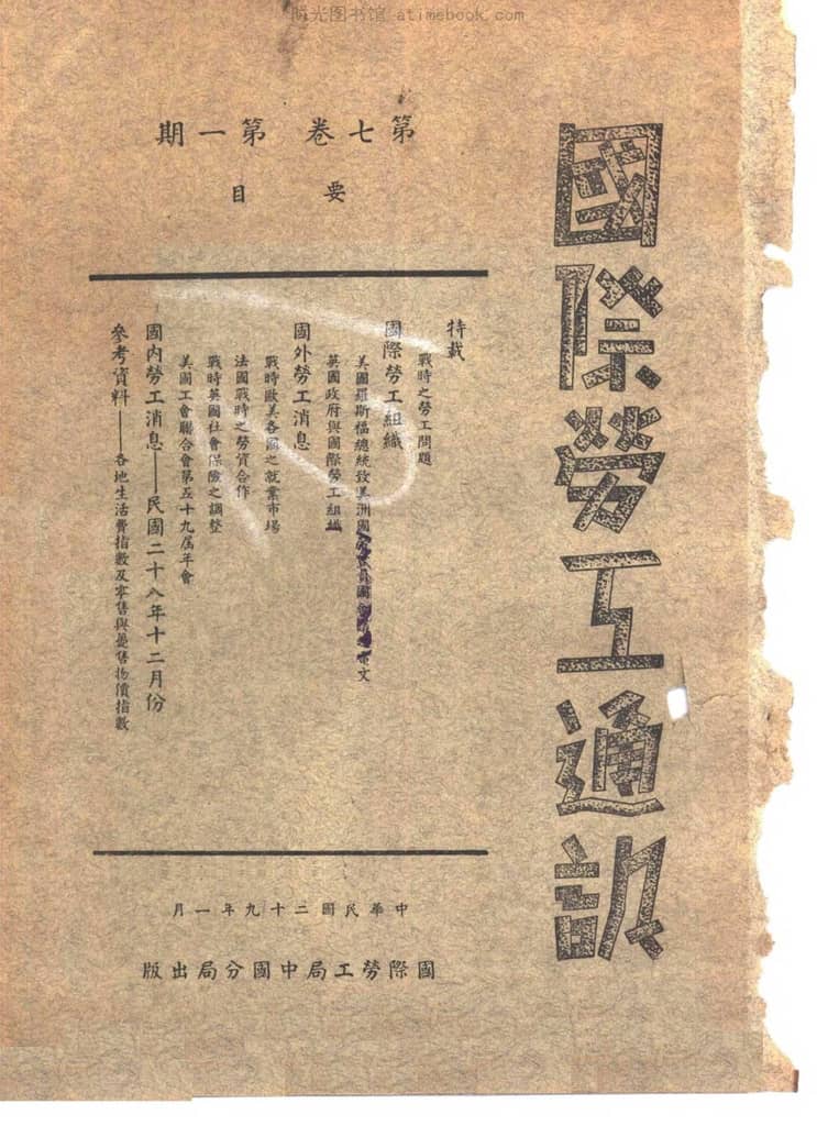 | 网盘路径:/时光图书馆珍藏系列/书籍文件/老杂志、老期刊/民国期刊/上海/《国际劳工通讯》(上海)1940-1941年合集.db | ||